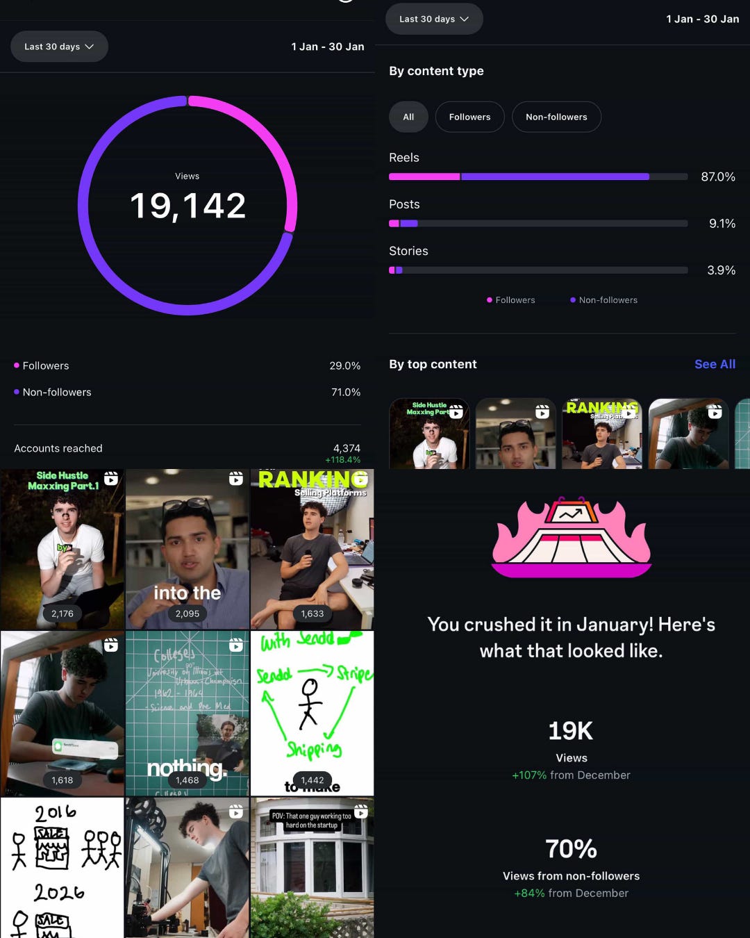 ~25,000+ total views across social channels in January (+107% MoM), achieved with $0 paid spend